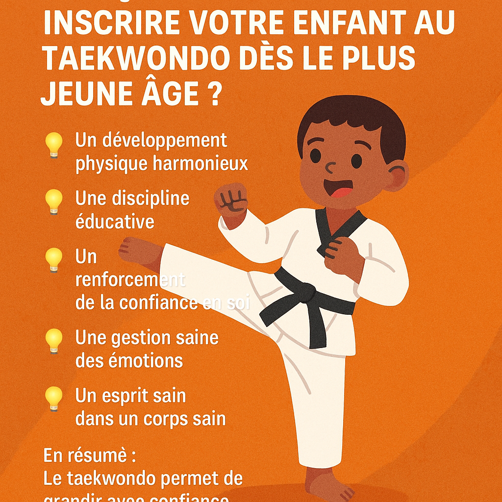 Le Taekwondo, au-delà d’un art martial spectaculaire, est une véritable école de la vie. Pour les enfants, il représente une activité complète qui développe à la fois le corps, l’esprit et le caractère.